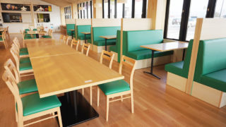 公共事業として山形県米沢市にある「道の駅米沢」の木製建具を製作いたしました。 こちらは食堂のテーブル・椅子・ソファーの事例です。ご利用の際には、デザインや使い勝手をぜひお確かめください。