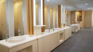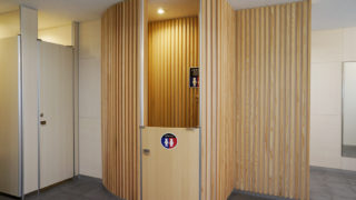 公共事業として山形県米沢市にある「道の駅米沢」の木製建具を製作いたしました。こちらは男性トイレの事例です。ご利用の際には、デザインや使い勝手をぜひお確かめください。